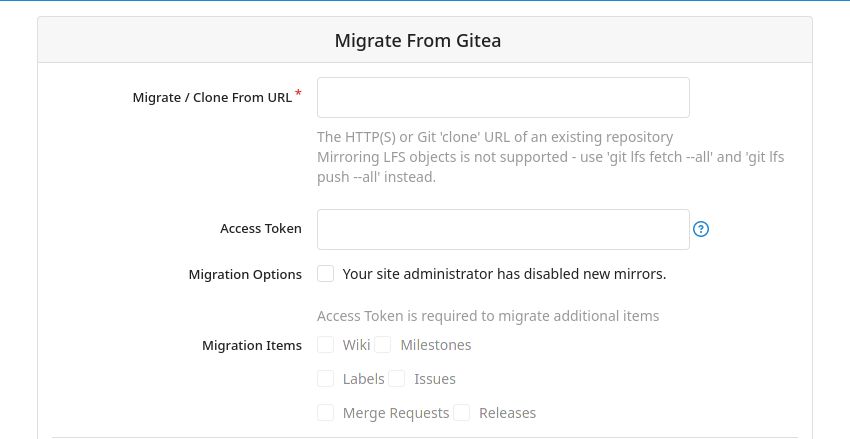 Here's an explanation of some fields on the Gitea migration page:
